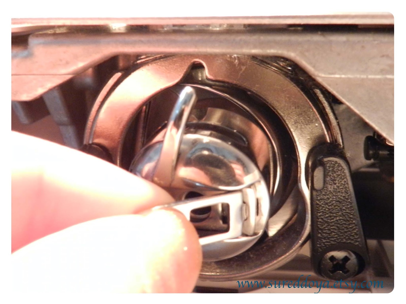 Insert thread through the plastic bobbin. Ensure thread end is long enough for a firm grip.
